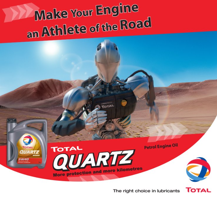 Επίσης από το 2006 έχουμε συνεργασία με την εταιρία TOTAL (είναι μια από τους τρεις μεγαλύτερους κατασκευαστές λιπαντικών στον κόσμο). Χρησιμοποιούμε όλη την γκάμα των λιπαντικών τους, σύμφωνα με τις οδηγίες των κατασκευαστών, εξασφαλίζοντας έτσι την μέγιστη λιπαντική προστασία και την ελαχιστοποίηση των φθορών του κινητήρα.